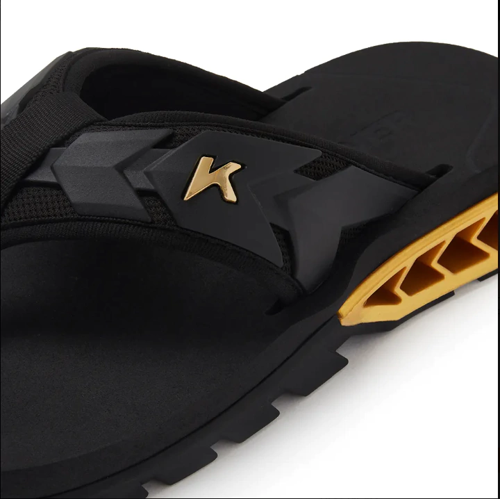 | Solado na cor preto e megatratorado de borracha vulcanizada para garantir mais segurança ao caminhar. Peça Re.Amp amplificadora na cor dourado que promove elevação a cada passo |